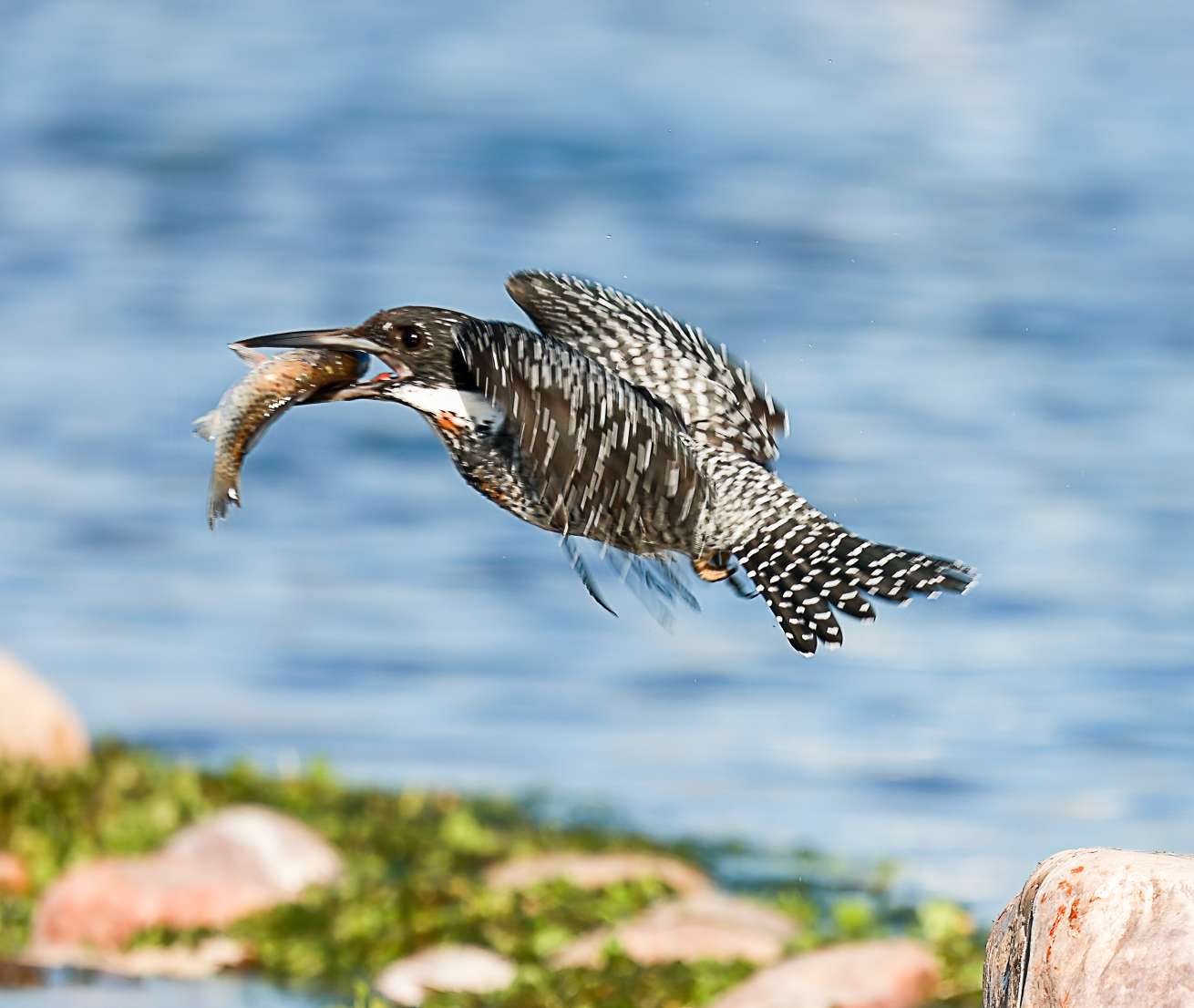 它虽名字带“狗”,实则是佛法僧目翠鸟科的鸟类,是我国体型最大的翠鸟。显著特征 头上具有高高耸立、黑白相间的冠羽,如同“怒发冲冠“。体羽主要为黑白两色,上体青黑色并密布白色斑点,腹部白色。中等体型,是翠鸟中的“大个子“,体长可达40厘米。栖息环境 林中溪流、多砾石的清澈河流、湖泊、池塘等水水域,从高空俯冲入水捕鱼,眼睛能迅速调整水中视线反差。它们对栖息环境有一定要求,喜欢流速快、多砾石的清澈河流及溪流。只要水足够清澈,食物足够丰富,就有可能见到它们的身影。
