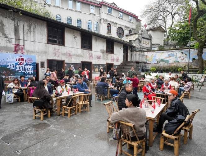合唱团成员打卡山城巷坝坝席。主办方供图